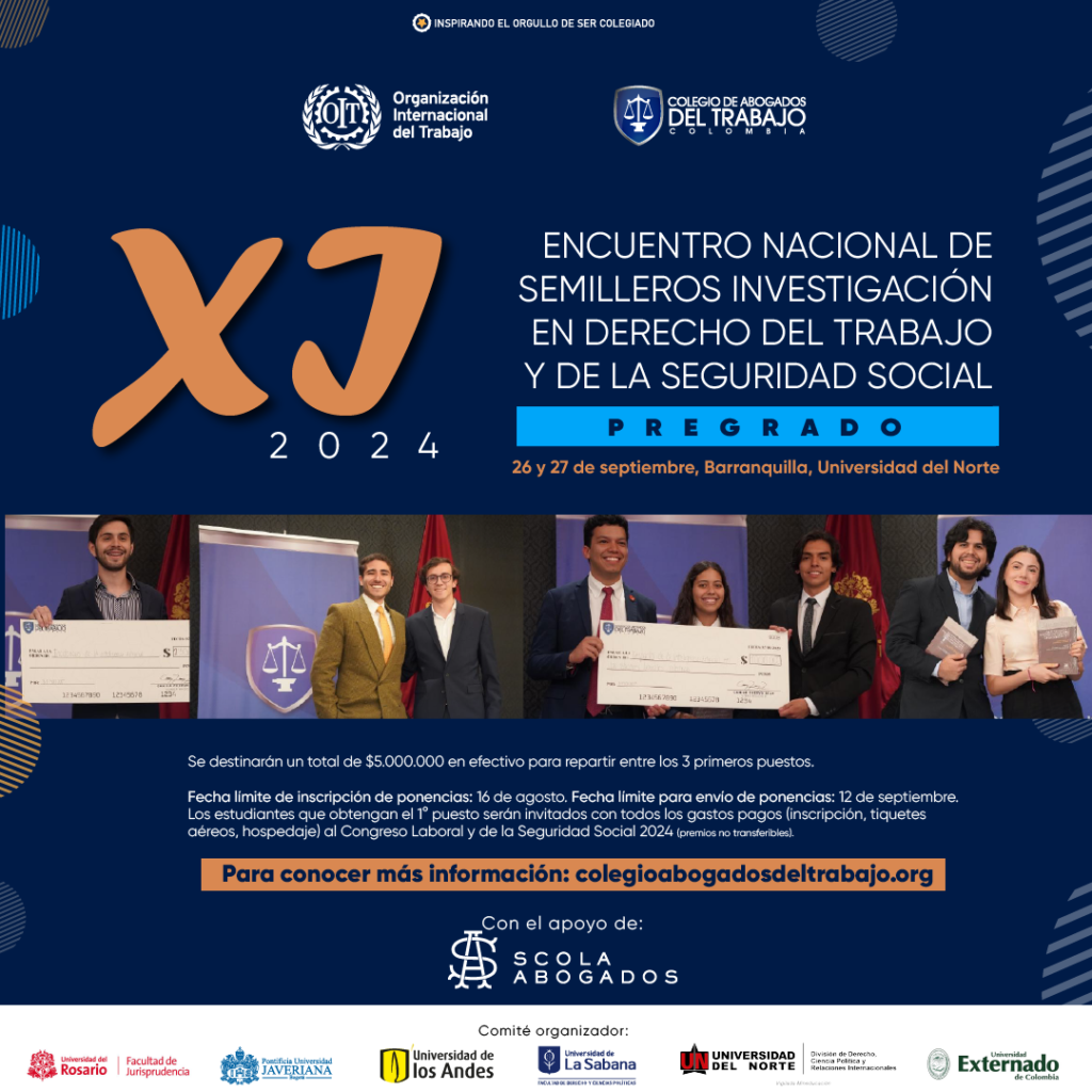Las inscripciones deben ser realizadas por las Universidades al correo administracion@colegioabogadosdeltrabajo.org